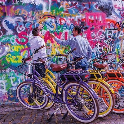 The most popular “I Like eBike” tour of our guests. With 7 very different locations above the city, this tour is an exceptional experience. The 7 most amazing views of the historical center of Prague. Discover both sides of the river. Up to 32 stops in major Prague locations, monuments and buildings. 1 stop for refreshments in Prague’s largest beer garden. On this tour you will see the most important historical monuments of Prague. You will also discover some hidden gems of Prague. Kampa Island, or John Lennon’s Wall. You will see the place where the biggest concert in our history took place.
